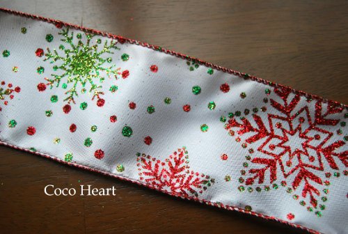 ~Coco Heart~X’mas カラフルスノーラメ 幅広 ワイヤー入り 1m単位 (リース・プリザ・ドライフラワー)
