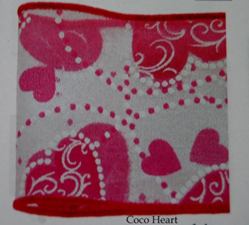 ~Coco Heart~ 1m単位 アラウンドハート ピンク ワイヤー入り 幅広 リボン ( バレンタイン ホワイトデー 母の日 ラッピング リース・プリザ・ドライフラワー)