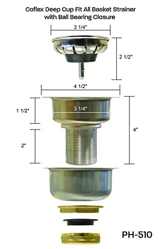 CoFlex Deep Cupフィットすべてのシンクバスケットstrainer-簡単押しバスケットwithボール軸受Closure