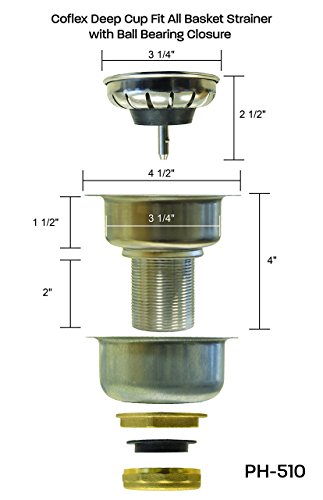 Coflex Deep Cup Fit All Sink Basket Strainer- Easy Press Basket with Ball Bearing closure [並行輸入品]