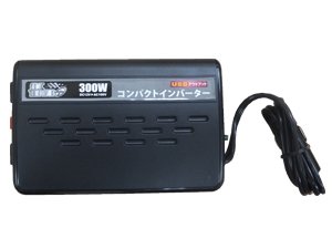 - DC/ACインバーター:入力電圧:DC12V 出力電圧:AC100V / DC5V(USB) 最大出力:300W(短秒) 定格出力:225W 出力波形:矩形波 保護回路:過負荷、短絡、過電圧、減電圧、過熱保護 サイズ:100 × 155 × 50mm 重量:420g ※モーターを装備した器具、インバーター付きの照明器具、精密機器、計測機器等はご使用できない場合がございます。