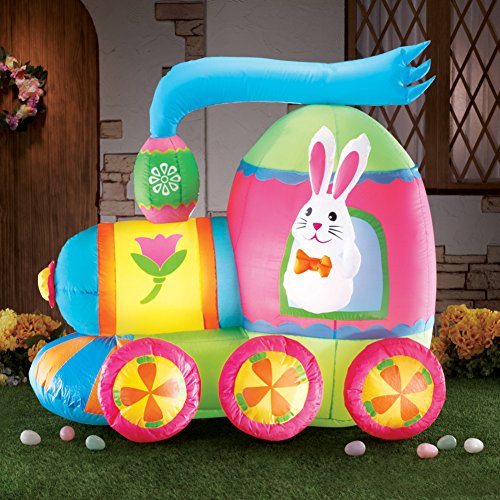Here Comes Theイースターバニーのことができるのお祝いのインフレータブルイースター。この明るい色の列車はあなたの屋外に加えイースターDCOR用両面。膨らんはACコンセントに接続するだけで、自動でBalloonとが光ります。60 " L。電源ケーブルで構成されています。含まロープと杭に固定場所に保管してください。ポリエステル、プラスチック;インポートされました。48 " L x 32 " W x 42 " H