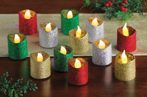 LED Glitter Holiday Flamelessキャンドル – 12のセット