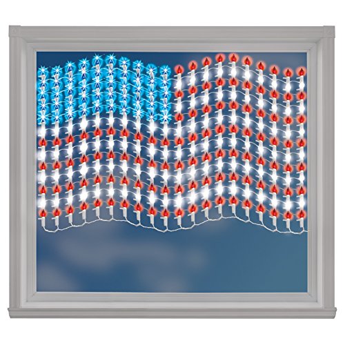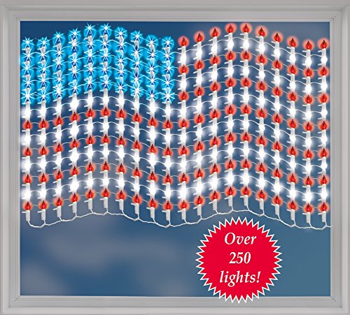 この壮大な表示されます250以上明るいライトに並べて愛国のアメリカ国旗。色とりどりのライトのメッシュの背景にアタッチする簡単にハング壁またはウィンドウでは、屋内またはアウトすることができます。ACコンセントに差し込むと26 " L電源ケーブルで構成されています。PVC、ガラス、銅。30 × 21 " H