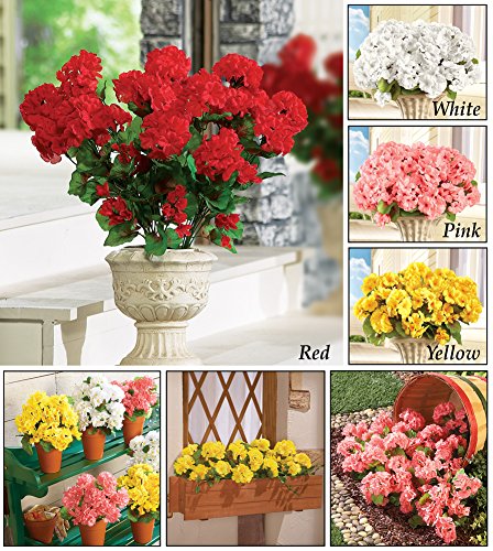 ゼラニウム花柄ブッシュ、人工、メンテナンスフリー、フラワーピック – Set of 3 イエロー 16179 YELW