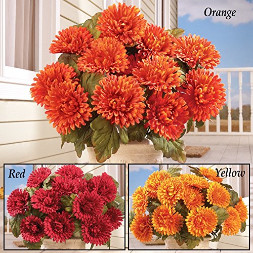 フローラルMums人工フェイクメンテナンスフリーフラワーBush – 3のセット レッド 31506 RED