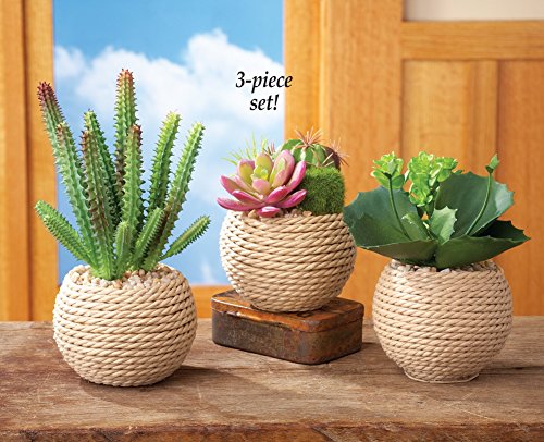 多肉植物鉢 フェイク人工ロープ鉢 3点セット グリーン プラスチック。