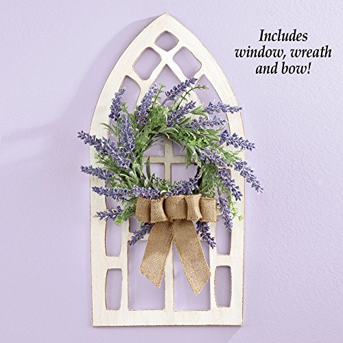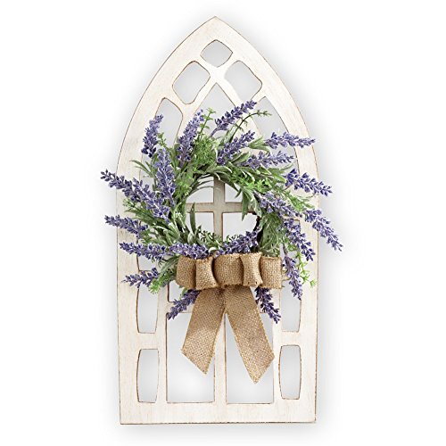 この素敵なウォールアートの美しいラベンダーリースの上に中心の木製ウィンドウフレームにアンティークな仕上がりになっています。黄麻布リボンのアクセントは完璧な仕上げで、上部にフックを付けるとハンギング簡単にすることができます。プラスチック、金属、木製。大きさ10 " L x 20 " H