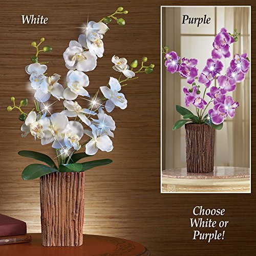 永遠の美しさ、この素敵な配置で驚きの蘭が特徴で輝きとホワイトライト。色、テクスチャ内をリアルな花が美しいポット。オン/オフのスイッチのボトムが含まれています。は3ボタンセル電池が含まれます。プラスチックとポリエステル。6 " sq。× 26 " H、ベースカラーは、ホワイトまたはパープル。