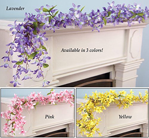 春スタイルのスプラッシュを追加このの明るいレンギョウのガーランド。美しい炉棚では、ドアや窓などを、ドレープを中心に沿って手摺子、S、すばらしい方法にカラーを追加しておきましょう。フックします吊り下げ用。ポリエステルとラタン。72 " L。は、ラベンダー、ピンクやイエロー。