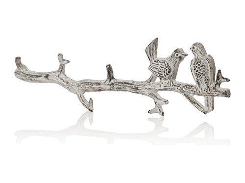 Cast Iron Birds On Branch Hanger withフック6 – 壁/ドアマウントされ、メタル、頑丈、素朴な、ヴィンテージ、リサイクル、装飾ギフトアイデア – 18.5 X 2 X 4.5 " – withネジとアンカーby Comfify