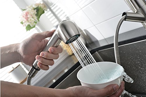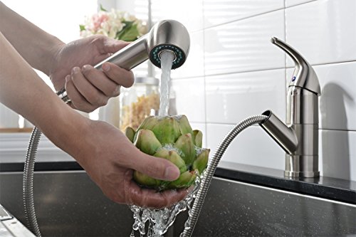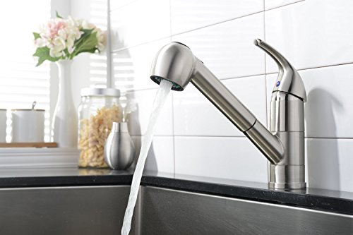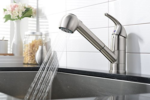Commercial Stainless Steel Single Handle Pull Out Sprayer Kitchen Sink Faucet, Single Lever Pull Down Brushed Nickel Kitchen Faucets [並行輸入品]