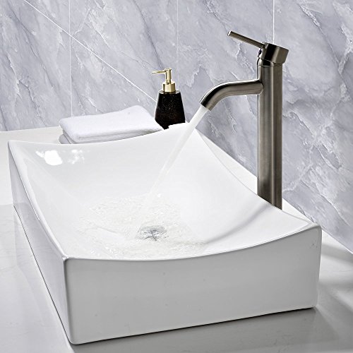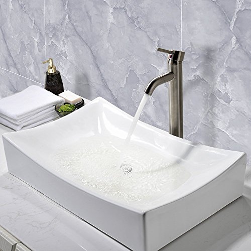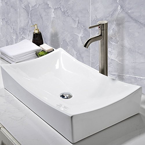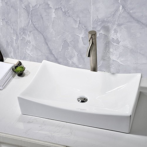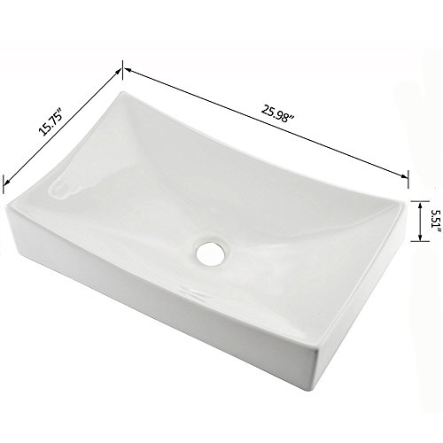 Comllen Above Counter Rectangle White Porcelain Ceramic Bathroom Vessel Sink Art Basin [並行輸入品]