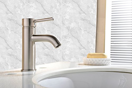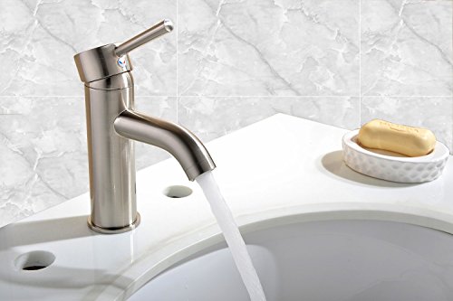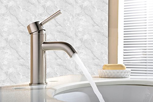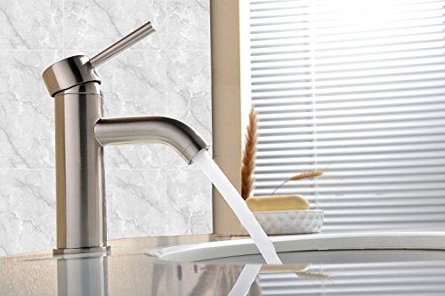 Comllen Modern Brass Single Handle Stainless Steel Bathroom Vessel Sink Faucet, Brushed Nickel Lavatory Sink Faucet [並行輸入品]