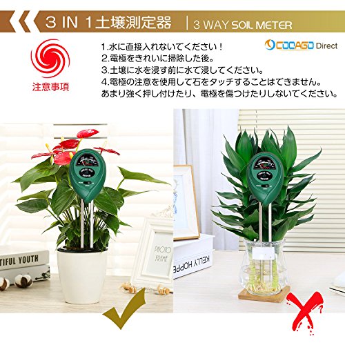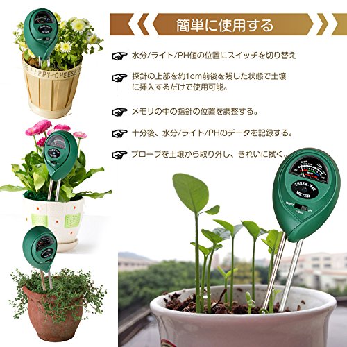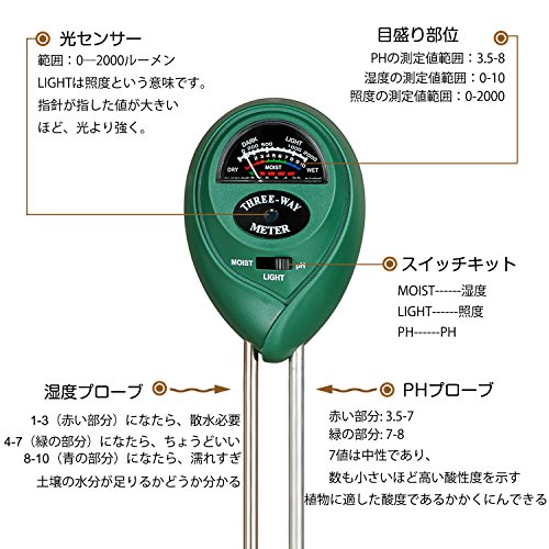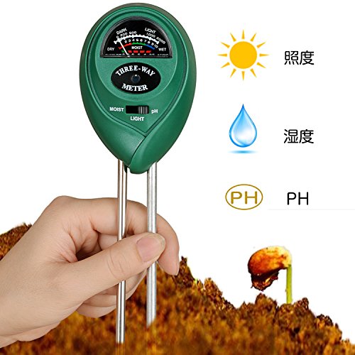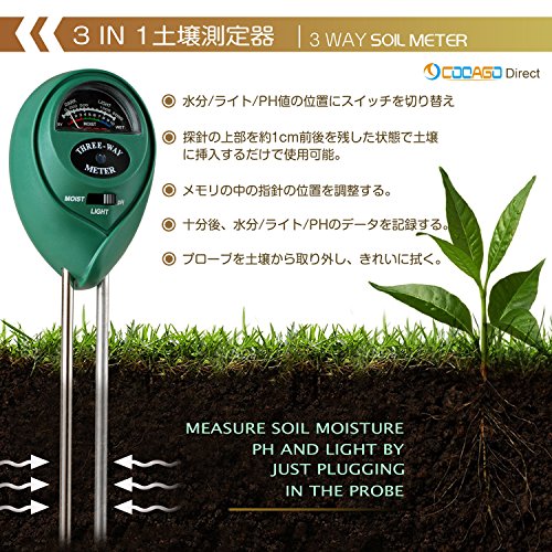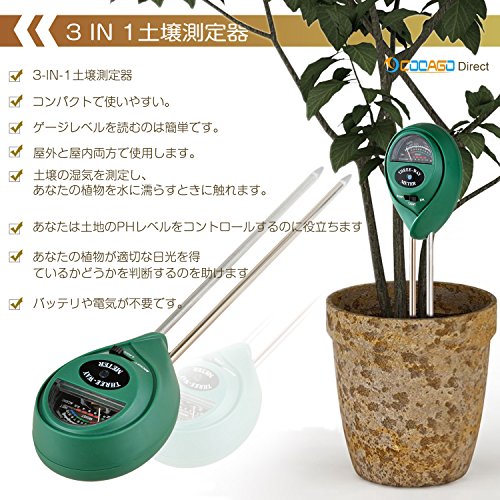 土壌pH計、CooAgo 3-in-1多機能 土壌測定器 土壌酸度/照度/水分計 土壌測定メーター 土壌 テスター、ハーブ&ガーデニング用具、簡易型 屋内/屋外使用でき 農業、栽培、家庭菜園など適用(電池不要)