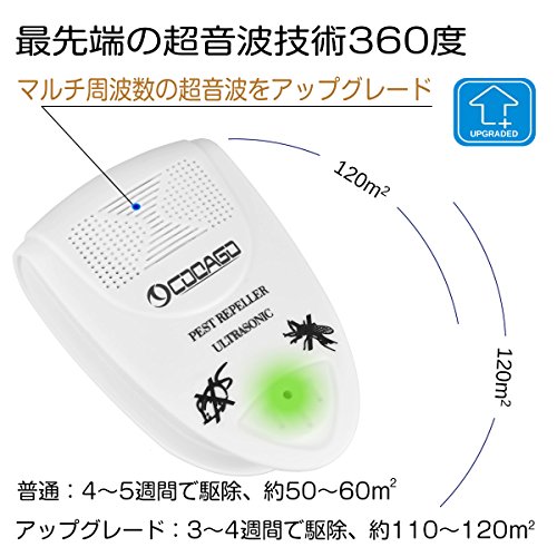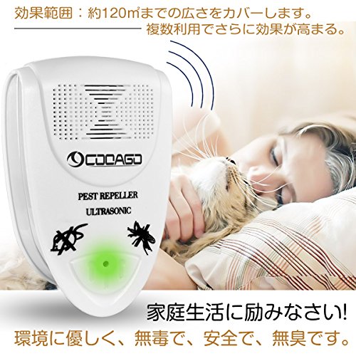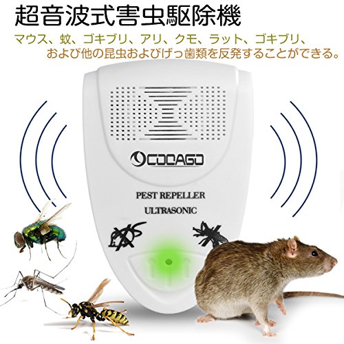 CooAgo 超音波式害虫駆除機 害虫駆除機 使いやすくて便利な超音波式 先進技術 超音波式 害虫 駆除機 360°シャットアウト ネズミ・ゴキブリ ・有効 台所・厨房・食料品店・倉庫などのねずみ駆除に 無毒&安心 ( 2個セット、1年保証 )