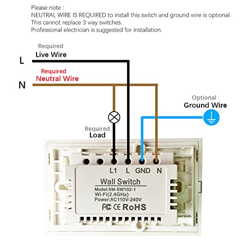 1で構成されています。として、スマート・壁スイッチで簡単従来のライトとして取り付けスイッチはありません。(ニュートラルな配線/設定された単極、でのみ)