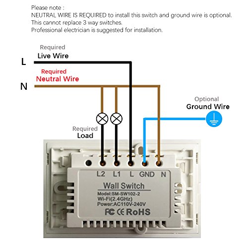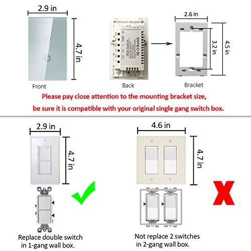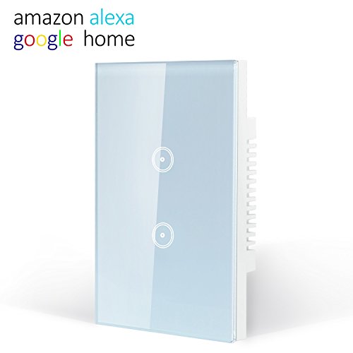 スマートWi-Fiライトスイッチ タッチパネル式 Amazon Alexa対応 リモコン付き スマートフォンやタブレットから操作可能 ハブ不要 Replace 2 Switches in 1 Gang Wall Box ZNKG-B02