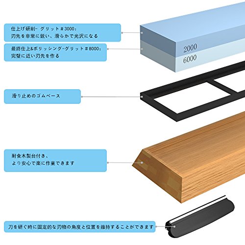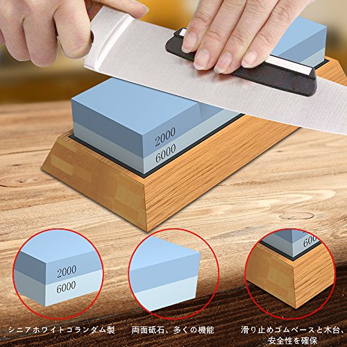 砥石 仕上げ, 砥石 包丁研ぎ 2000/6000 両面砥石 家庭 プロ キッチン 木工 工芸 園芸 研ぎ石 角度ホルダー 木台付き