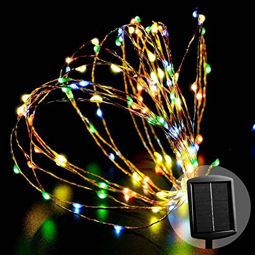 Coomatec LED ジュエリーライト 太陽発電 ソーラー 充電式 7m120球 イルミネーションライト ガーデンライト ワイヤーライト ソーラー クリスマス/飾り/電飾/クリスマスライト 屋外 防水 発光モードは2パターン【赤青黄緑】 光センサー内蔵 CT120