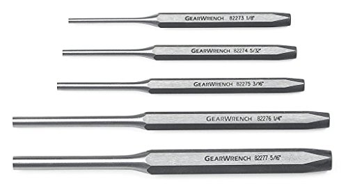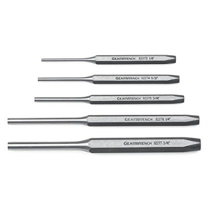 GearWrench introduced the original patented five-degree ratcheting wrench in 1996 and quickly became a go-to brand for professional automotive technicians. The innovation didn't stop there. Year after year, the GearWrench brand continues to expand its line-in ratcheting tools and beyond-to help automotive and industrial technicians get their jobs done faster and easier. Includes: 1/8" x 5" x 5/16" Pin Punch, 5/32" x 5-1/4" x 5/16" Pin Punch, 3/16" x 5-1/2" x 5/16" Pin Punch, 1/4" x 7" x 3/8" Pin Punch & 5/16" x 7" x 1/2" Pin Punch.