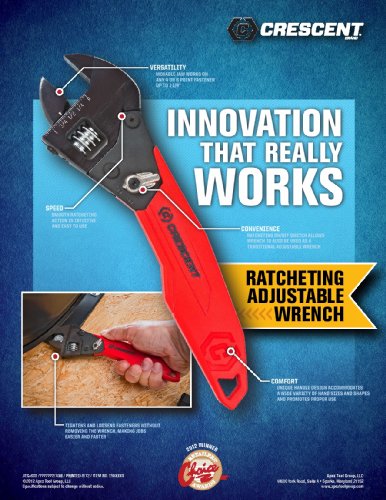 - Crescent ATR28 8-Inch Ratcheting Adjustable Wrench, Red/Black