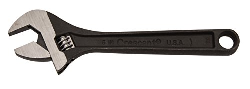 Alloy steel and heat treated, Black Oxide finish resists corrosion, Polished head and regular, non-slip grip handle. World famous Crescent brand adjustable wrench. These wrenches are made of fine alloy steel to give extra strength and wear. Used by professional mechanics, industrial tradesman and home mechanics. Dimensions are proportioned for greatest strength with minimum weight. A tension spring under the knurl helps prevent the jaw opening from changing adjustment. An open handle design permits easier knurl adjustment. Handle made of forged alloy steel and heat treated for toughness and durability. Jaw Capacity : 0.938, Handle Material: Steel, Length (Inches) : 6, Finish: Black Phosphate, Weight (lbs.): 0.313.