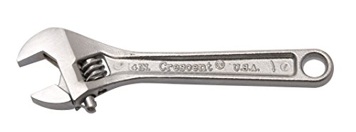 Alloy steel and heat treated, Chrome plated finish resists rust and corrosion, Polished head and regular, satin finished handle. World famous Crescent brand adjustable wrench. These wrenches are made of fine alloy steel to give extra strength and wear. Used by professional mechanics, industrial tradesman and home mechanics. Dimensions are proportioned for greatest strength with minimum weight. A tension spring under the knurl helps prevent the jaw opening from changing adjustment. An open handle design permits easier knurl adjustment. Handle made of forged alloy steel and heat treated for toughness and durability. Jaw Capacity : 0.500, Handle Material: Steel, Length (Inches) : 4, Finish: Satin Chrome, Weight (lbs.): 0.135.