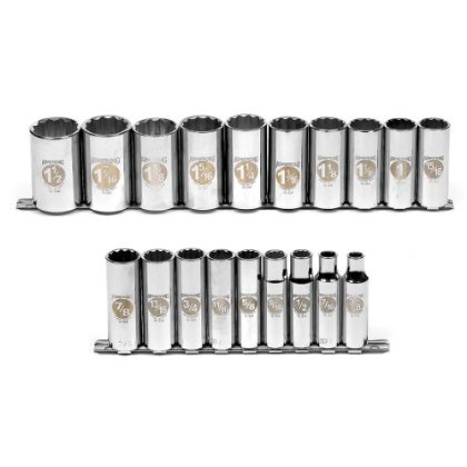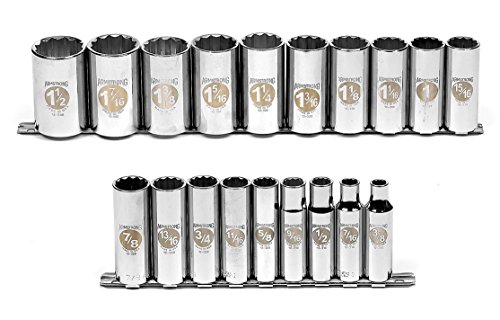 Lifetime Warranty. Armstrong Industrial Hand Tools have a heritage of Made in the USA since four brothers founded the company in 1890. Armstrong brand sockets feature precise geometry for an exacting fit and are designed to withstand the toughest conditions from our factory floors to the U.S. Military. All sockets have a lifetime warranty to back up our commitment to industrial grade tools. Product Name : 1/2-Inch Drive Deep Length SAE Socket Set;Product Name : 1/2DR Deep Length SAE Socket Set;Finish : Full Polish Chrome;Weight (Pound) : 1.32;Length Format : Deep;Drive Tang Size (Inch ) : 1/2;Drive Type : 12 Point;SAE/Metric : SAE;Set Included Storage : Metal Socket Rail;Set Piece Count : 19;ASME Specification : B107.1-2002;US Federal Specification : GGG-W-641e;Laser EYE-D : Yes.