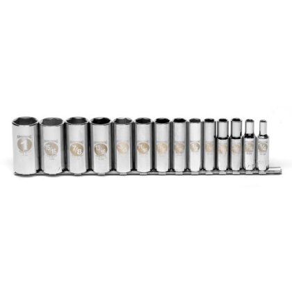 Lifetime Warranty. Armstrong Industrial Hand Tools have a heritage of Made in the USA since four brothers founded the company in 1890. Armstrong brand sockets feature precise geometry for an exacting fit and are designed to withstand the toughest conditions from our factory floors to the U.S. Military. All sockets have a lifetime warranty to back up our commitment to industrial grade tools. Product Name : 3/8-Inch Drive Deep Length SAE Socket Set;Product Name : 3/8DR Deep Length SAE Socket Set;Finish : Full Polish Chrome;Weight (Pound) : 0.52;Length Format : Deep;Drive Tang Size (Inch ) : 3/8;Drive Type : 6 Point;SAE/Metric : SAE;Set Included Storage : Metal Socket Rail;Set Piece Count : 13;ASME Specification : B107.1-2002;US Federal Specification : GGG-W-641e;Laser EYE-D : Yes.