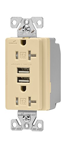 Eaton tr7756 V-box 20 Amp 125 V組み合わせUSB 3.1 A充電器with二重レセプタクル、アイボリー