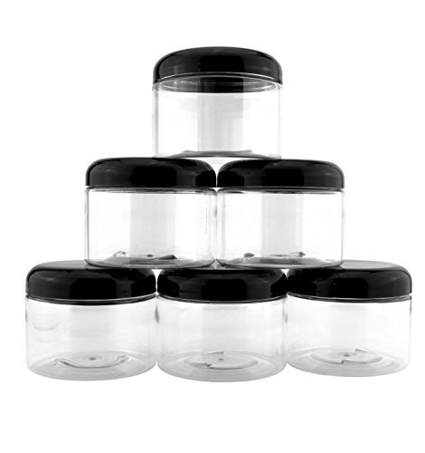 8オンスジャーの容量は1カップ/240mlです。16オンスジャーの容量は2カップ/480mlです。どちらも幅広な3インチ口で内容物を出したり量ったりするのが簡単です。8オンスサイズは旅行や持ち運びに最適なサイズです。ガラスの使用が危険なサウナやプールサイドでの使用に最適です。16オンスサイズはまとまった量の物にぴったりです。 8オンスジャーは高さ2インチ、幅3.5インチです。16オンスジャーは高さ3.5インチ、幅3.5インチです。どちらも黒の滑らかな丸いプラスチック製ふた付きクリア/透明/シースルー容器。ジャーのふたは交換可能で、8オンスジャーと16オンスジャーのどちらにもフィットします。ジャーは積み重ねられます。ふたは裏地の付いていないドーム型です (フォームラバーの裏打ちはお手入れが面倒)。ご注意:5%を超えるエッセンシャルオイルや、15%を超えるアロマオイルの保存には、PETプラスチック容器のご使用はお避けください。高濃度のエッセンシャルオイルには当社のガラス製品をお薦めします。特記事項