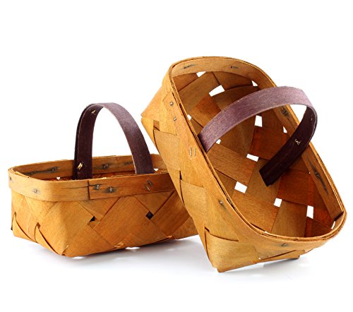 QuartサイズDiamond Weave木製バスケット( two-packミディアムブラウンカラー木製バスケットW /ハンドルフルーツ&野菜用贈り物