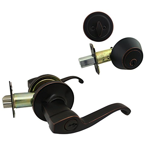 Cosmas 50シリーズOil Rubbed Bronzeエントリレバーwith Matching Single円柱デッドボルトコンボパックKeyed Alike ( WeキーロックOrders Alike無料)