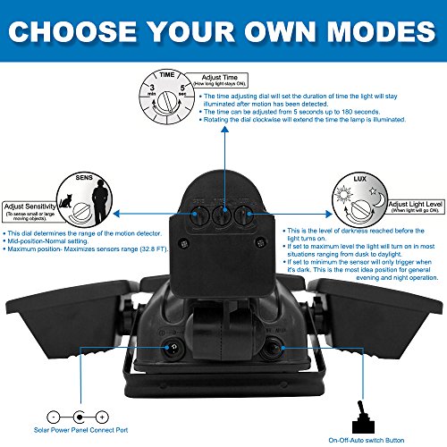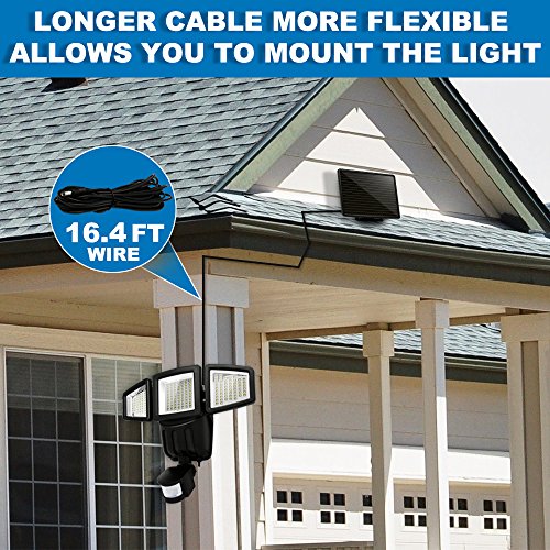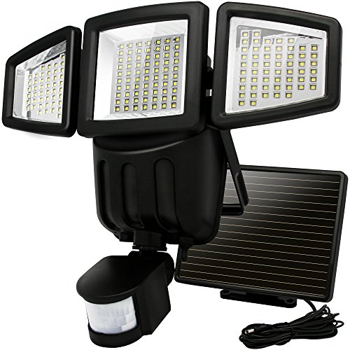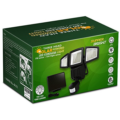 Solar Poweredモーションセンサーライト、Costech 182-ledトリプルヘッドセキュリティ屋外ライトwith 1000ルーメンOuput超明るい、耐候性、ガレージ、裏庭、パティオとPathway LED