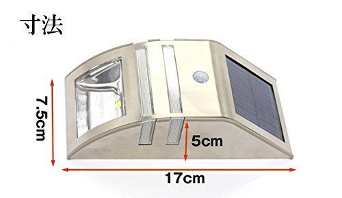 ●ソーラーパネル:多結晶ソーラーパネル5.5V/0.33W ●バッテリー:リチウム電池1個3.2Vの500mAH/N2 ●LEDカラー:白球色、電球色 ●色温度:2800-3000K ●本体カラー:シルバー、ブラック ●動作時間:8-10時間(使用状況により異なります) ●充電時間:6-8時間 ●機能:人体感知・光センサー ●材質:ステンレス+ ABS+ PC ●量(約):200g ●付属品:取り付けねじ、日本語説明書、英語説明書