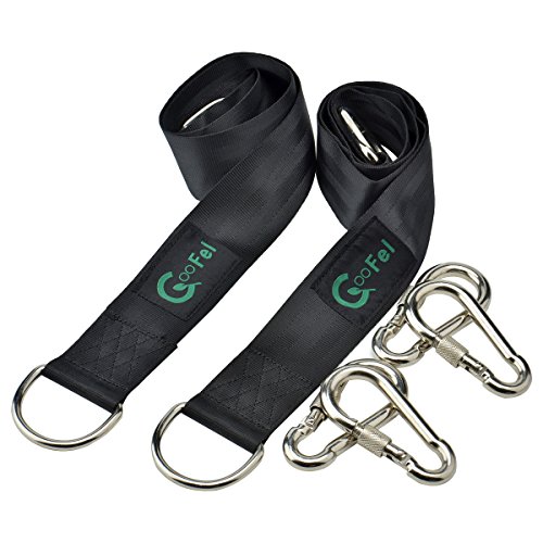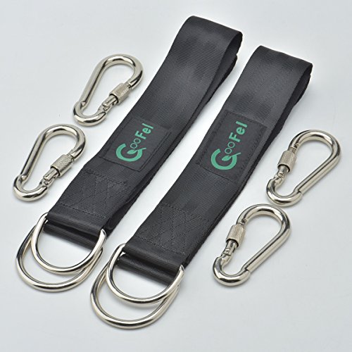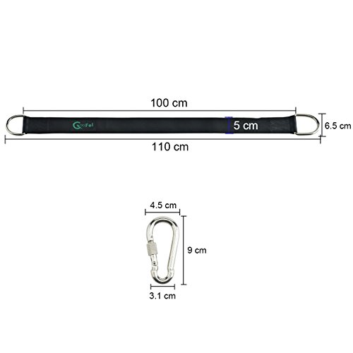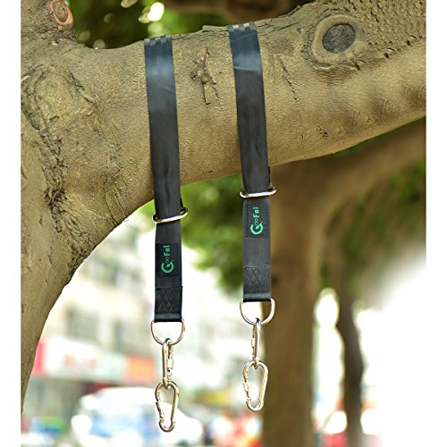 - ツリーブランコ吊り下げキット:3フィートのベルト2本セットは、業務用のナイロンで作られています。ベルトは、摩耗の兆候を示さずに厳しい冬や残酷な夏に耐えることができます。また、カラビナフックは耐久性のあるステンレススチールで作られており、ほとんど壊れることはありません。