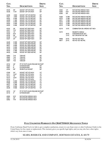 Craftsman クラフツマン #30254 工具 254点 ツールセット + 15インチ フレックスハンドル Mechanics Tool Set with Case + 15inch Flex Handle [並行輸入品]