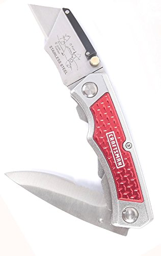 Liner lock keeps blades securely folded when not in use and securely extended during use, reducing the risk of injury from slipped blades. Twin-Blade Lockback Knife Makes the Blade You Need Available Anywhere A good pocket knife is essential to outdoorsmen and stockroom workers alike, and the Craftsman twin-blade lockback knife offers the most useful blades for both. Whether you need to cut a piece of fishing line or a heavy cardboard box, the blades in this lightweight knife have you covered. The locking mechanism keeps it safely closed when not in use, and prevents accidental closing during use for improved safety. Craftsman-quality blades hold an edge through extensive use, and sharpen or change with convenient ease. The razor cutting blade on this twin-blade lockback knife is ideal for opening or breaking down boxes, precision line cuts and much more. It works with exacting precision, and has a quick-change mechanism for when the disposable blade begins to dull. A traditional partially serrated knife blade on the other end offers utility in a wide range of applications with long-lasting steel that can be sharpened again and again.