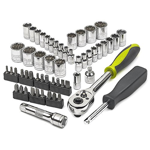 Backed by the Craftsman Lifetime Guarantee. If you've always wanted a compact, no-hassle tool kit without a hefty pricetag, the Craftsman Evolv 55 pc Mechanics Tool Set gets the job done. Searching for the right tool for the job, but not finding what you need in your tool kit? No problem. Craftsman has you covered. An all-in-one kit, it ensures that you'll never be searching for the right tool at any given time. The Evolv 55 pc Mechanics Tool Set weighs only 3.53 lbs. in total for easy, storable convenience. Plus, the kit's heavy-duty construction ensures a lifetime of wear-resistant durability. Each tool boasts an ergonomic, easy-grip handles for comfort and exceptional durability. You can rest assured that your tools will last, as they are backed by a Craftsman lifetime guarantee. The Craftsman Evolv 55 pc Mechanics Tool Set is the ideal, value-loaded starter kit for your at-home garage and includes: (9) 1/4 in. dr. Socket Set (3/16, 7/32, 1/4, 9/32, 5/16, 11/32, 3/8, 7/16, 1/2 in.); (10) 1/4 in. dr. Socket Set (4, 4.5, 5, 5.5, 6, 7, 8, 8, 10, 12mm); (1) Spinner Handle; (1) 1/4 Square Drive to Hex Bit Adapter; (4) 3/8 in. dr. Socket Set (1/2, 9/16, 5/8, 11/16 in.); (5) 3/8 in. dr. Socket Set (13, 14, 15, 17, 18mm); (1) 3/8 in. dr. Extension Bar (3 in.); (1) Adapter 3/8FX1/4M; (1) Teardrop QR Ratchet; (22) Screwdriving Bits & Holder.