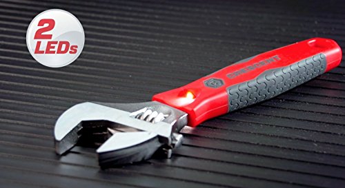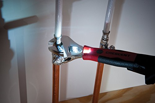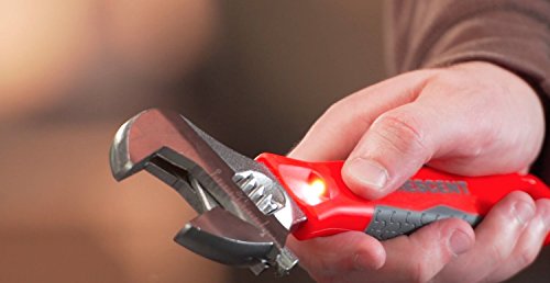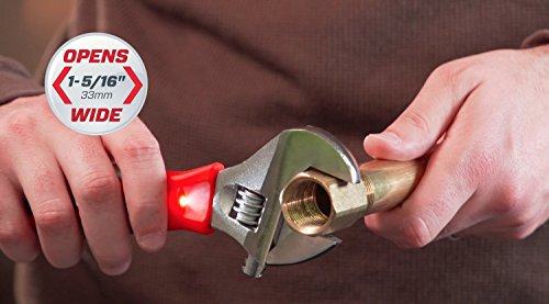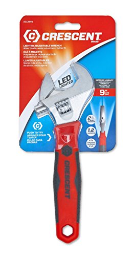 Extra Wide Jaw opens to 1-5/16-inch. The Crescent ACL29VS 9-Inch Adjustable Wrench sheds light on the task at hand. The integrated dual LED lights in combination with the extra wide jaw opening of 1-5/16-inch (33mm) makes this wrench ready for any task.