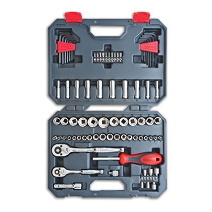Set Includes: 1/4' Drive, 72-Tooth Quick-Release Ratchet, 1/4' Drive, 6-Pt. Sockets: 5/32', 3/16', 7/32', 1/4', 9/32', 5/16', 11/32', 3/8', 4, 5, 6, 7, 8, 9, 10, 11 mm , 1/4' Drive, 6-Pt. Deep Sockets: 3/16', 1/4', 5/16', 3/8', 7/16', 6, 8, 10, 11, 12 mm, 3/8' Drive, 72-Tooth Quick-Release Ratchet, 3/8' Drive, 3' Extension, 3/8' Drive, 3/8' (Female) to 1/4' (Male) Adapter, 3/8' Drive, 12-Pt. Sockets: 7/16', 1/2', 9/16', 5/8', 11/16', 3/4', 13/16, 7/8', 12, 13, 14, 15, 16, 17, 18, 19 mm, 1' Driver Bits with Holders: Phillips, Slotted, Torx, and Hex , Dura-Driver Magnetic Bit Driver, SAE Hex Keys with Holder, Metric Hex Keys with Holder, SAE Nut Set with Holder: 3/16', 7/32', 1/4', 11/32', 3/8', 7/16' & storage case.