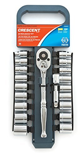The World Famous Crescent Brand Tool Sets Contain a Carefully Selected Assortment of Crescent Mechanic and Hand Tools. All Tools in This Set Meet New ANSI and ASME Specifications and Come with a Full Satisfaction Guarantee. Crescent, Providing Quality Tools since 1907. Set Includes: One 3/8' Drive 72-tooth quick release ratchet, one 3/8' Drive 3' Extension, 3/8' Drive 12 Point sockets sizes 5/16', 3/8', 7/16', 1/2', 9/16', 5/8', 11/16', 3/4', 13/16'; 9, 10, 11, 12, 13, 14, 15, 17 & 19mm.