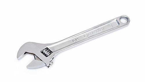 Crescent 10' Chrome Adjustable Wrench. The adjustable wrench has a 1-5/16'' wide opening with a polished face and laser etched scale. Increased knurl diameter for easier adjustment and increased load on fastener to reduce slip-off. Wrench provides a quick and easy way to determine fastener size in either SAE or metric.