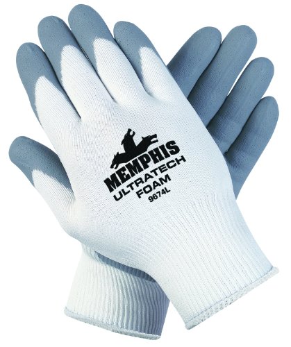 クルー9674Lウルトラテック泡シームレスナイロンニット手袋、大、ホワイト/グレー