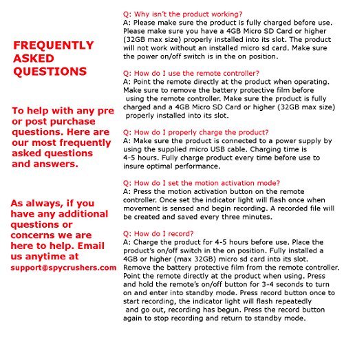 - PC WEBCAM & 32GB OF MEMORY (SOLD SEPARATELY) - A simple push button sequence changes your spy cam to a PC Webcam for online video chats, skype, google talk and more. Your spy gadget supports up to 32GB micro sd card. Store 1000's of photos and up to 120 MINUTES OF CONTINUOUS RECORDING per full charge.