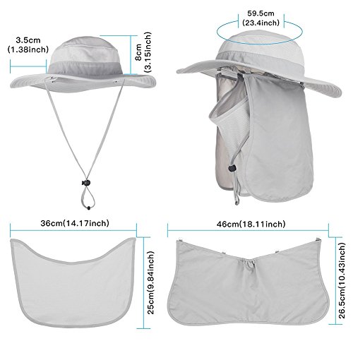 • UPF 50+プロテクション:ファンタスティック・フラップ・ハット、サンキャップUPF 50+日焼け止めにより、耳に敏感な肌を保ち、有害な光線から安全に守ります。全体が大きなショールに取り囲まれ、無料の取り外し、日焼け止め、通気性があります。 取り外し可能なフラップと通気性のフェイスプロテクターに加えて、それは要素から皮膚を保護し、マスクは埃から顔を保護することができます。
