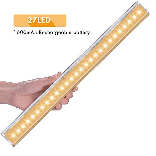Cshidworld センサーライト 人感センサー 27 LED USB充電式 クロゼット/タンス/本棚/部屋/階段/などに最適 高輝度 省エネ 超実用 貼り付け型 (27LED, 電球色)