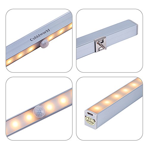 Cshidworld センサーライト 人感センサー 18 LED センサーライト 人感センサー バッテリ式 クロゼットタンス 本棚部屋/階段/などに最適 ネジで固定型 (18LED, 電球色)