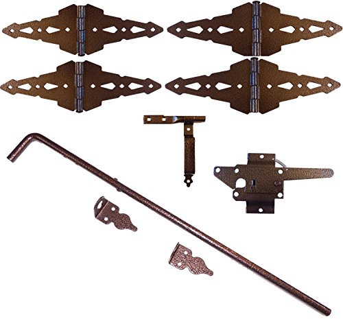 木製フェンスダブルゲートキット – ハンマーブロンズ仕上げ(木製ゲートヒンジ、ラッチとドロップロッド)